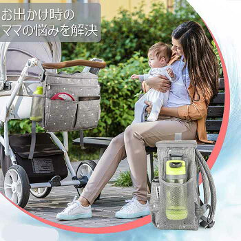 ベビーカー用バッグ ベビーカー オーガナイザー ドリンクホルダー マザーズバッグ 小物入れ 多機能収納バッグ 大容量 リュック ショルダー 手提げ 折り畳み可能 取り付け簡単 出産祝い
