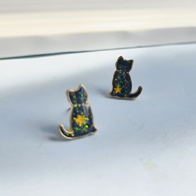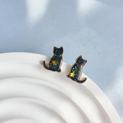 新作 Terse 可愛い エナメル ネコモチーフスタッドピアス 人気のねこをモチーフにしたデザイン 着けやすい直付けタイプのピアスはキュートだけど大人っぽく、愛らしい仕上がりです アニマル 面白い きらきらラメ入り sa0164abk