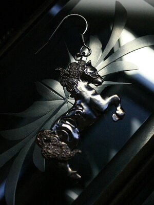 タテガミとシッポの躍動感が素晴らしい馬(ホース)と、シルバーボールの下に何本ものチェーンをぶら下げたタッセルデザイン。