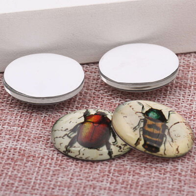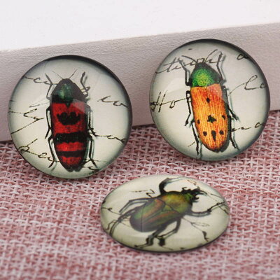 カナブンやカミキリムシなど様々な昆虫をデザインしたレトロな半球ドーム型のミール皿用のガラス製カボションパーツ。