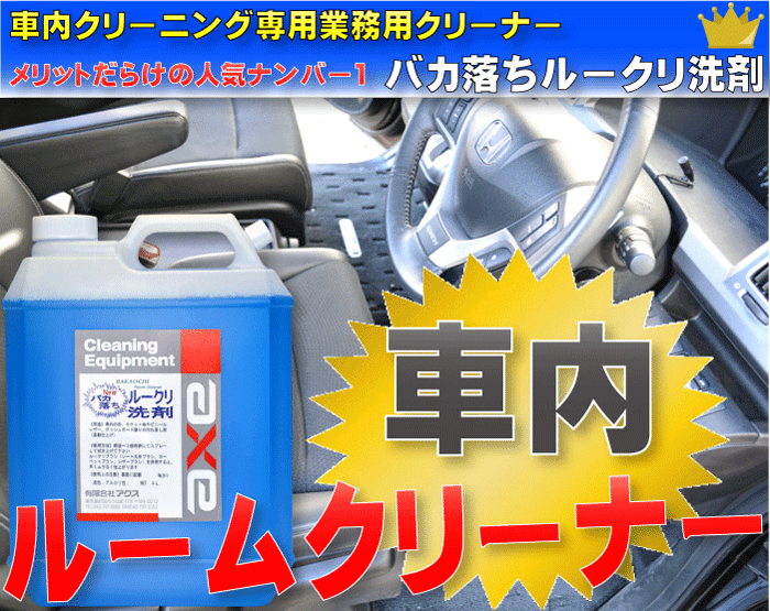 バカ落ちルークリ洗剤は、中古車業界のプロのルームクリーニングのために開発された業務用クリーナーです。