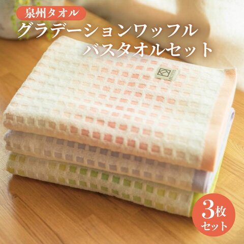 【ふるさと納税】グラデーションワッフルバスタオルセット ※ 厚手 パイル 柔らかい 上質 吸水力