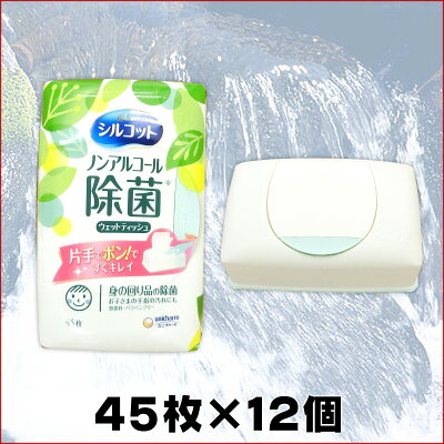 シルコット 除菌 ウェットティッシュ ノンアルコールタイプ 本体 45枚 × 12個 【ユニ・チャーム unicharm】【47339 kzh】