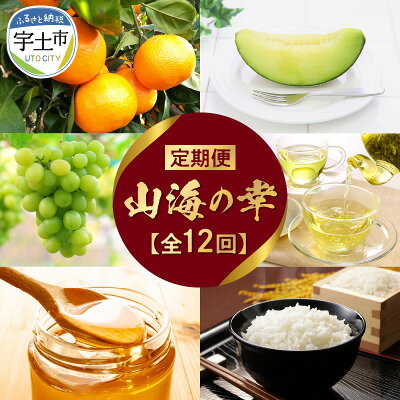 【ふるさと納税】定期便 12回 山海の幸 焼海苔 コウイカ ハマグリ かせいた メロン アンデスメロン はちみつ ブルーベリージャム シャインマスカット クイーンニーナ ブレンド ハーブティー セット 柿 太秋柿 米 棚田米 みかん 温州みかん 送料無料 【熊本県宇土市】