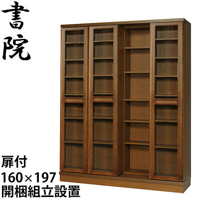 【配送・開梱・設置費込(本州)】 スライド書棚 スライド 本棚 大容量 スライド式本棚 スライド書棚 書院 SI-160T 160cm幅 2重・扉付