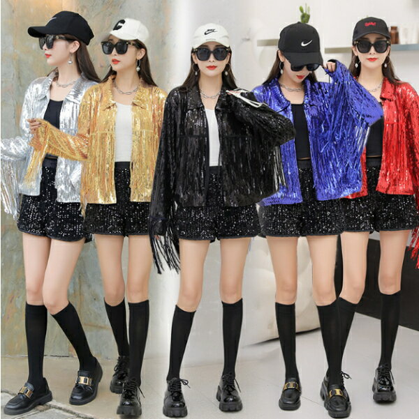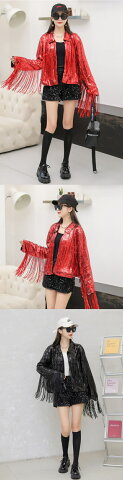 スパンコール衣装 【ジャケット、黒ショートパンツ2点セット・全5色】ダンス衣装 チアガール 応援団 女の子 キッズダンス 子供 キッズヒップホップ 衣装 お遊戯会 クリスマス 音楽会 発表会 ステージ 衣装ベース
