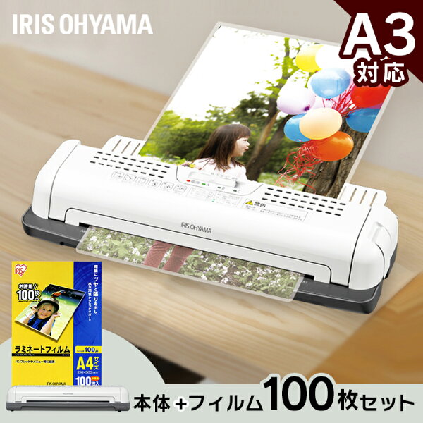 当店一番人気のラミネーター【ラミネーターA3 LTA32W】と【選べるラミネートフィルム】のセット! ・A3サイズセット ラミネートフィルム A3(20枚入)【厚さ100ミクロン】付き ・A4サイズセットラミネートフィルム A4(100枚入)【厚さ100ミクロン】 付き ・写真・A4サイズセットラミネートフィルム 写真Lサイズ (100枚入)【厚さ100ミクロン】とラミネートフィルム A4(20枚入)【厚さ100ミクロン】付き ・名刺・A4サイズセットラミネートフィルム 名刺サイズ (100枚入)【厚さ100ミクロン】×2個とラミネートフィルム A4(20枚入)【厚さ100ミクロン】付き LTA32W(A3対応)】 ●商品サイズ(約):幅49.4×奥行16.5×高さ10.8cm(トレー収納時) ●重量(約):3.6kg ●主要材質:ABS樹脂、ポリカーボネート、スチール ●電源:AC100V(50/60Hz) ●定格消費電力:500W ●最大ラミネート幅:32cm ●最大ラミネート厚:0.6mm ●ラミネート速度:約0.3m/分(50Hz)、約0.36m/分(60Hz) ●ウォームアップ速度:約6分※季節や温度によって前後します。