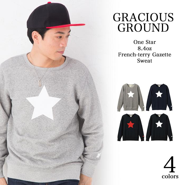 \P2倍+10%OFFクーポン配布中/星柄 トレーナー クルーネック メンズ レディース ユニセックス ペアルック カップル 親子 友達 お揃い スウェット ワンスター アメカジ USA 裏毛 ファインフレンチテリー 長袖 8.4オンス S M L XL グレー ネイビー ブラック