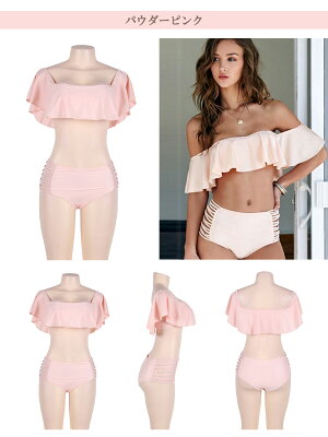 【メール送料無料】 【即納】 ハイウエストオフショルビキニ 水着 レディース ビキニ 上下 セット 小胸 バスト 盛れる 可愛い 大人 女性用 女の子 ママ セクシー キュート 谷間 リゾート オフショルダー デザイン 体型カバー みずぎ 女性水着 フリル 無地 DY3174