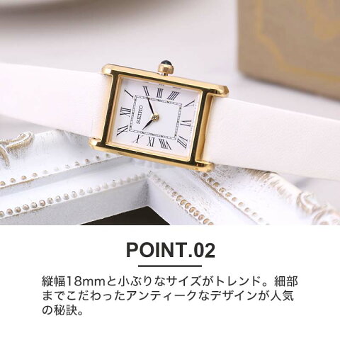 アンティークなデザインと小ぶりなサイズ感が女性らしさを引き立て、腕元を華やかに演出してくれます。