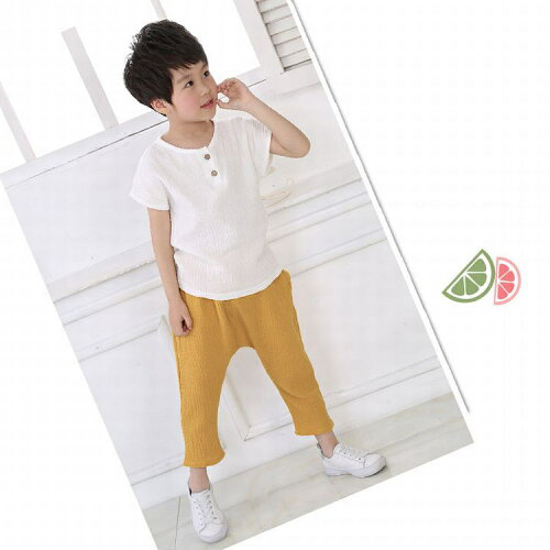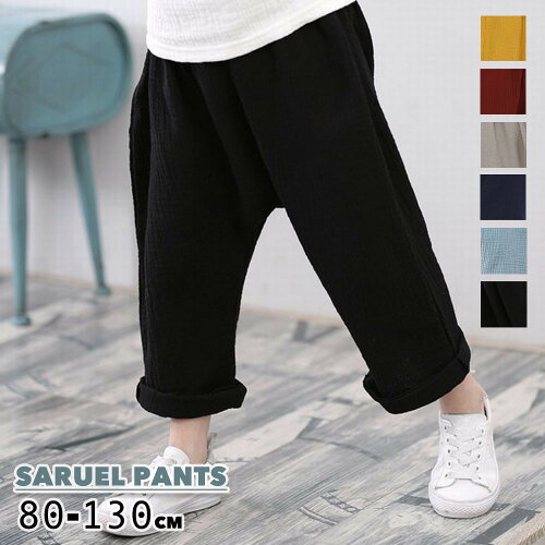 送料無料 サルエルパンツ ズボン 子供服 男の子 サルエル 長ズボン 7分丈 ゆったり 薄手 股上深め ロールアップ おしゃれ オシャレ カッコいい かっこいい 格好いい 無地 シンプル 涼しい プチプラ さわやか 肌触り 春 夏 秋 春夏 イエロー グ