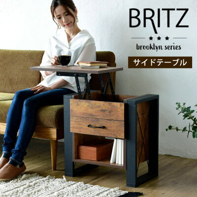 BRITZ サイドテーブル テーブル サイドテーブル・ナイトテーブルFBR-0007 ソファサイド テーブル 昇降式 サイドテーブル ナイトテーブル ブルックリン ソファ横 ベッドサイド デスク横 引き出し 収納 おしゃれ テレワーク リフティング