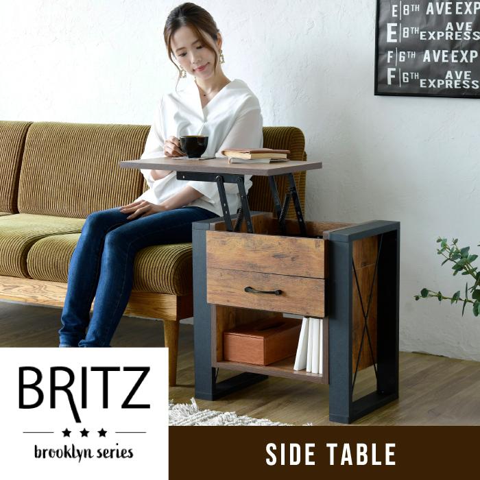 ソファサイド テーブル 昇降式 サイドテーブル ナイトテーブル ブルックリン ソファ横 ベッドサイド デスク横 引き出し 収納 おしゃれ テレワーク リフティング