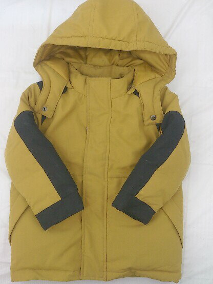◇ Petit main プティマイン ダウンジャケット 長袖 ダウンジャケット サイズ100 マスタード系 ブラック メンズ 【中古】管理番号120602000592920220629ベースW1/林付属品フードフード取り外し可能所々にシミの様な汚れあり。